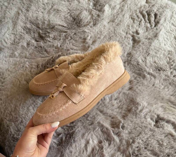Loafers fur beige
